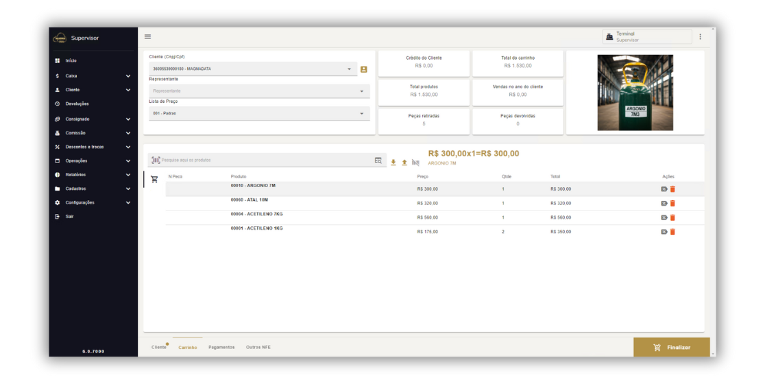 100% de controle dos cilindros pelo sistema. Venda com preço cadastrado por cliente pelo app.